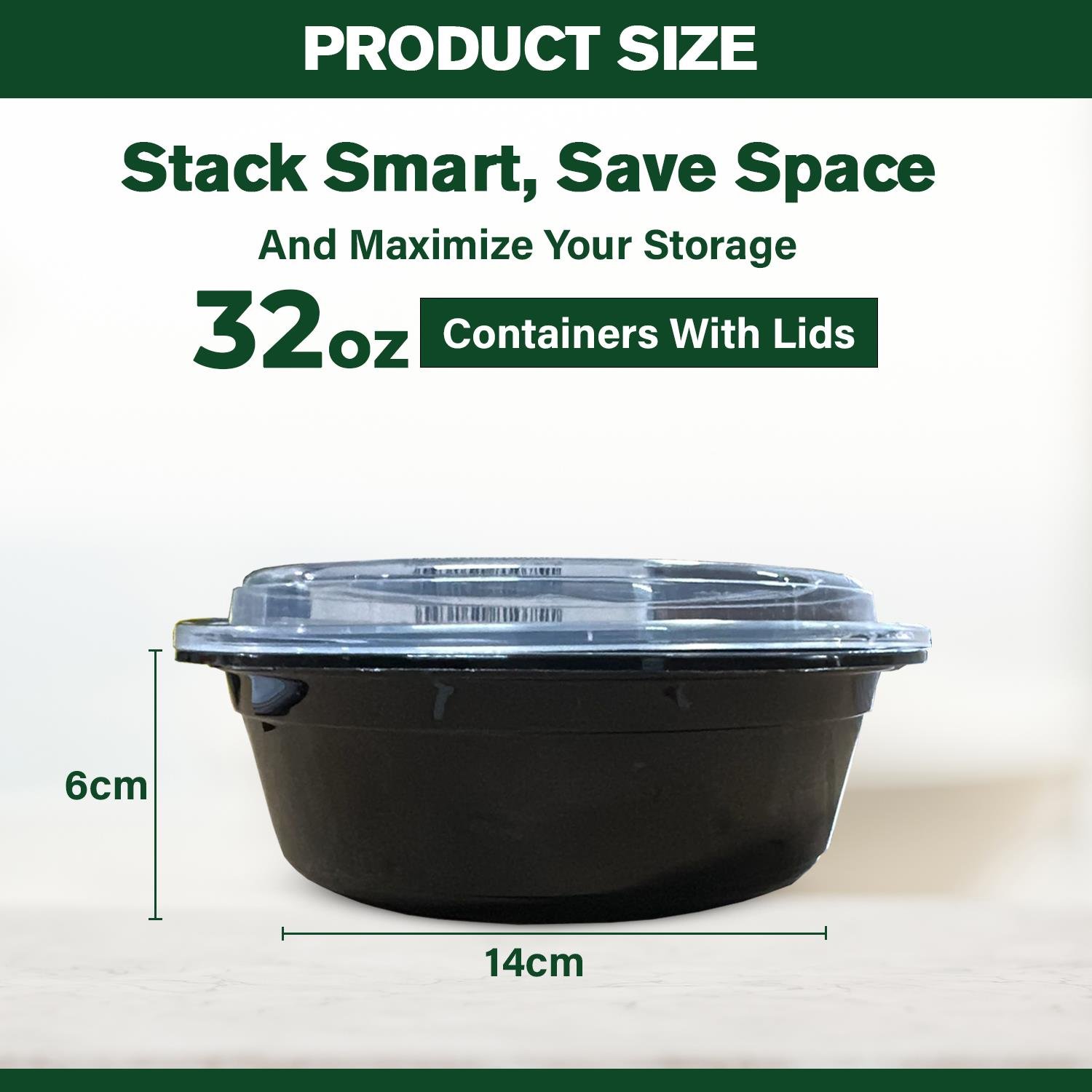 - MEAL PREP AND PORTION CONTROL : stackable containers ideal for portion controlled diets, leftovers, salads, pastas and healthy snacks. Each container is perfectly proportioned to help you stick to a balanced diet plan. Each container can store 32oz of food. Our Round Meal Prep Food Containers are made from premium quality plastic making then strong, thick and durable with secure airtight lids keeping the food fresh for longer.