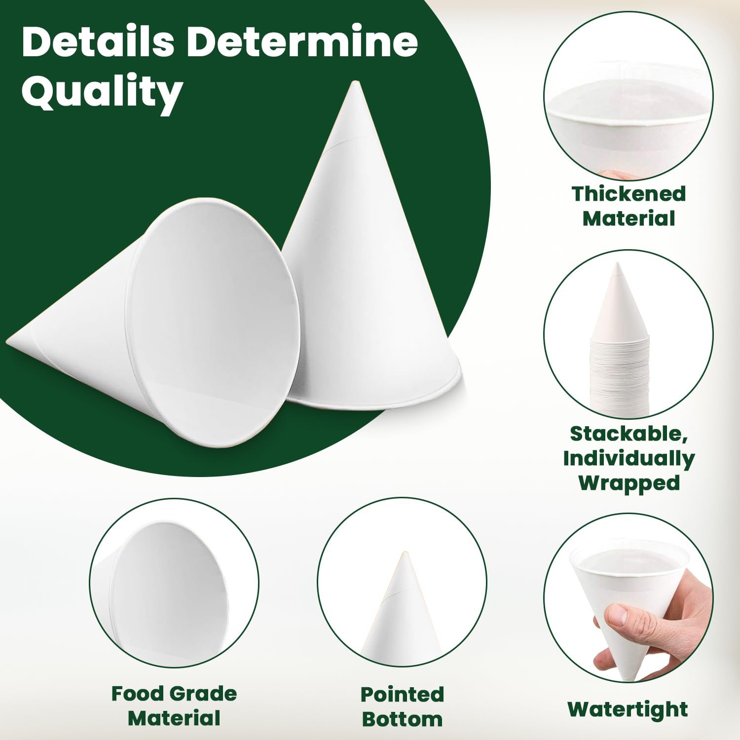 - LEAK-RESISTANT : these 4oz cone cups designed with sturdy construction, these cups are leak-resistant, preventing spills and messes.