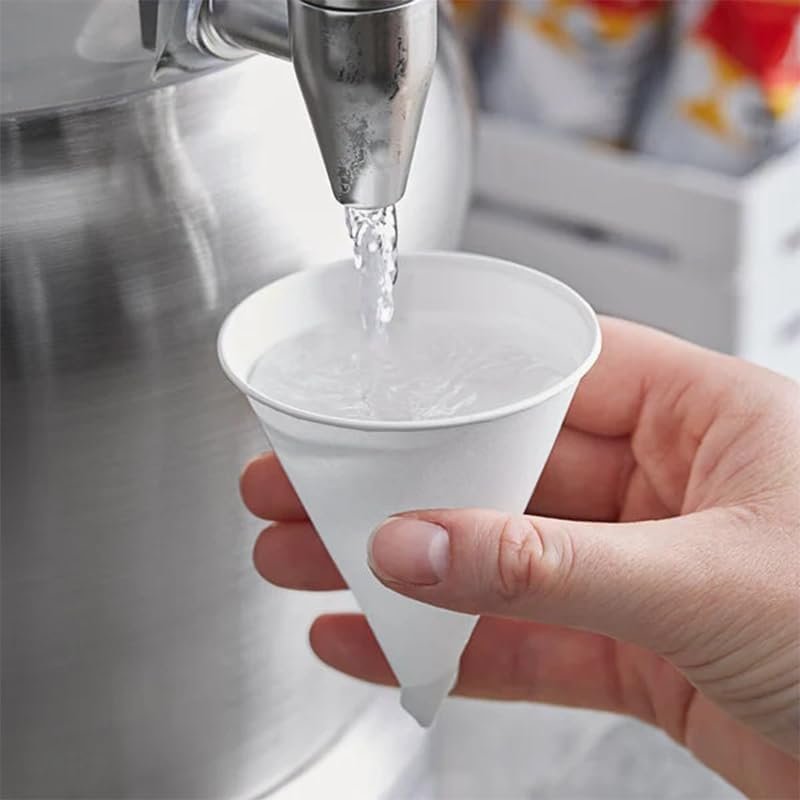 - MATERIAL : 100% biodegradable paper cone cups designed for water coolers and beverage dispensing. 4Oz disposable individual roll rim paper cones cups for water cooler made from sustainable paper material, these cone cups offer a greener alternative to plastic use reducing environmental impact.