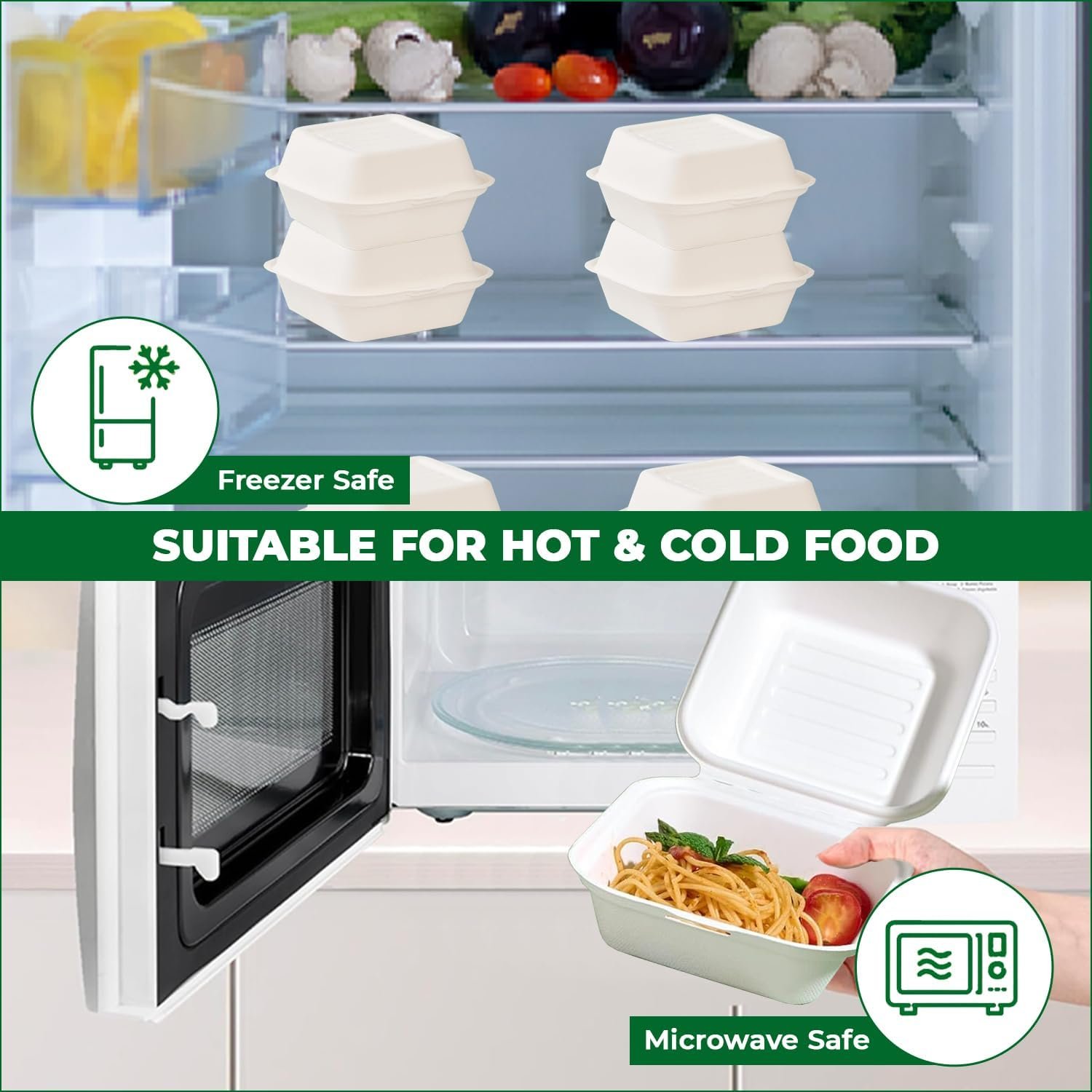 - MICROWAVE AND FREEZER SAFE: Our bagasse sandwich boxes are microwave and freezer-safe, ensuring your food stays fresh and tasty whether you’re reheating or storing it. Enjoy the convenience and peace of mind, knowing you can maintain the freshness and flavour of your food effortlessly.