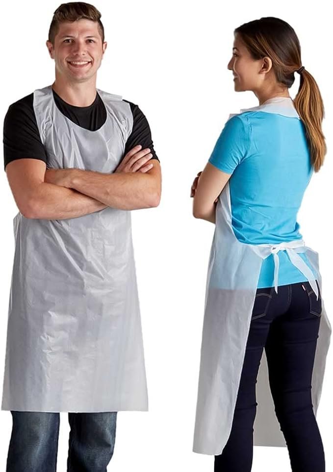 • Hygienic & Safe: Designed for disposable use to minimize cross-contamination risks in hygienically sensitive areas. This pack of 1000 disposable plastic aprons provides a practical and hygienic solution for messy tasks.