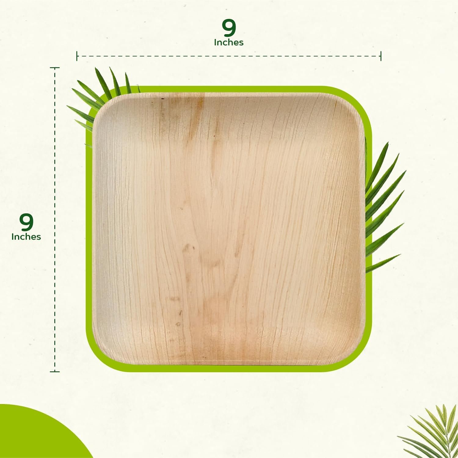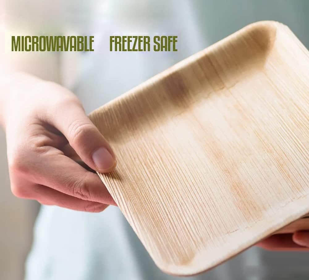 A true gift from nature palm leaf plates : Made from naturally fallen Areca palm leaves, gently cleaned with water and heat pressed to desired shapes and sizes.